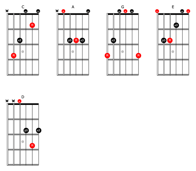 Chops: Beginner Theory: Beginner Lesson Overview: • Learn how to convert all open position chords to moveable shapes. • Identify the location of the root in each shape.. • Connect all five CAGED shapes mapping out the entire neck and be able to do this in any key starting on any one of the five shapes.. Click here to download a printable PDF of this lesson’s notation. To get the most out of your guitar playing, at some point you realize that you need to . . .
